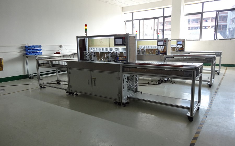 從本機剝線沾錫后夾具可直接用于焊接,焊接完成后治具可乘設備預制的回流帶回到前端擺線工位,省時省力員工不離位。